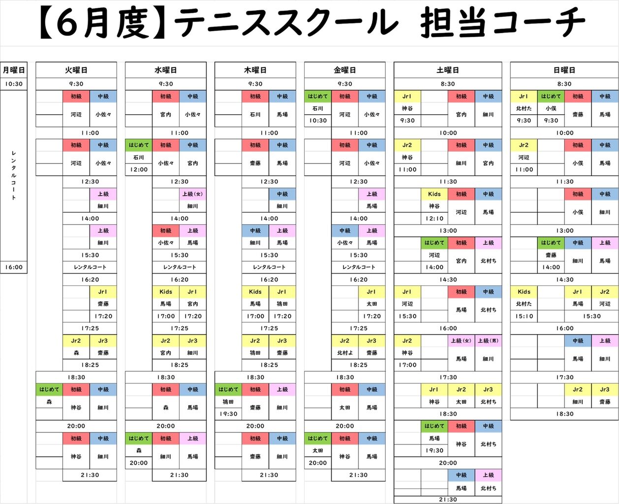 2025年06月02日 6月期コーチ担当表 アクセス有難うございます。6月期コーチ担当表になります。 現在、申し訳ありませんがHPからの担当表アクセスに不具合が出ています。ご確認お願い致します。 カテゴリなしの他の記事 < 前の記事次の記事 >