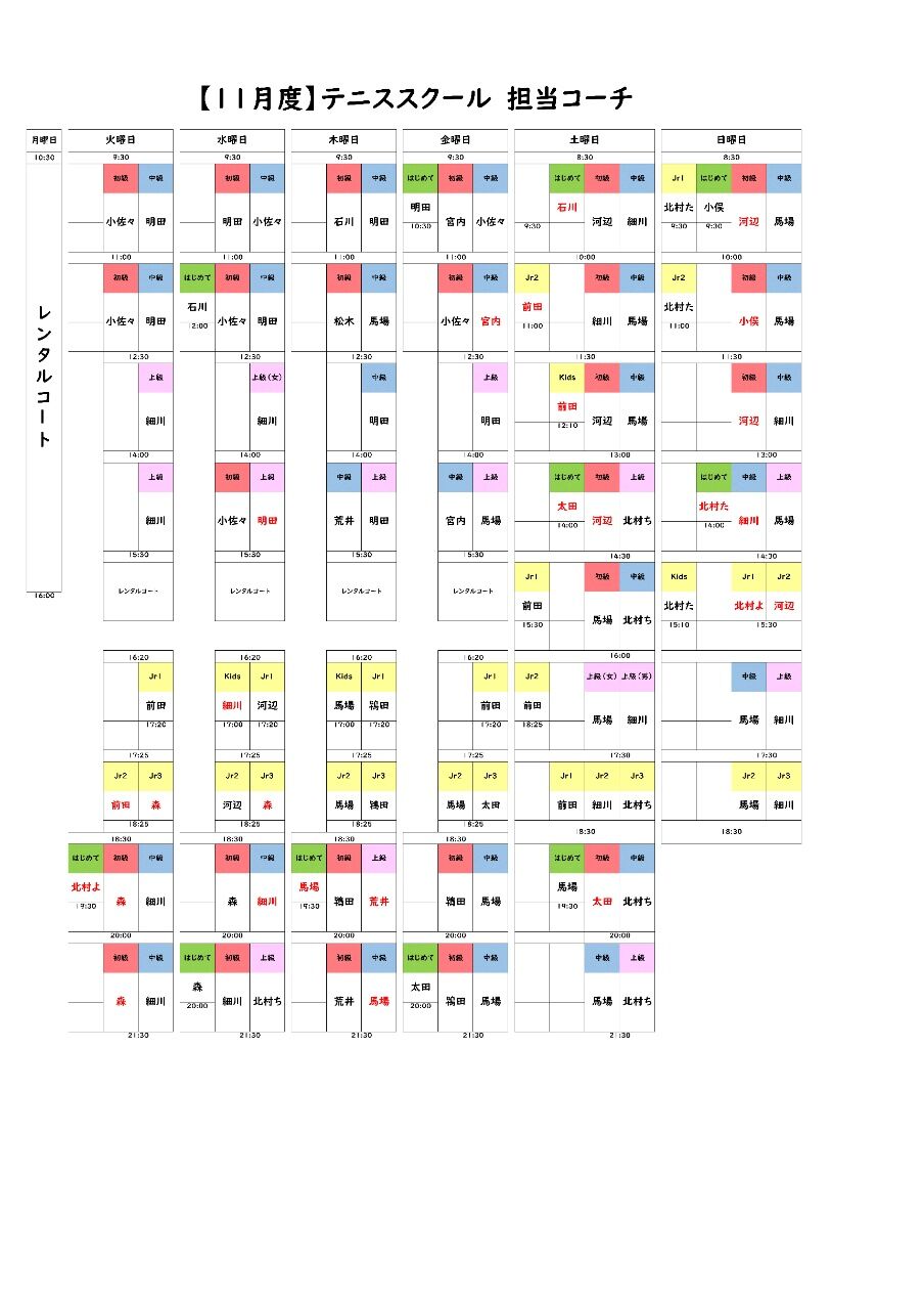 2025年11月05日 11月期のレッスンテーマ いつもアクセス有難うございます。昨日より11月期が始まりました。今月はストロークとサーブの強化月間です。コートでお待ちしています。それではまた。 カテゴリなしの他の記事 < 前の記事次の記事 >