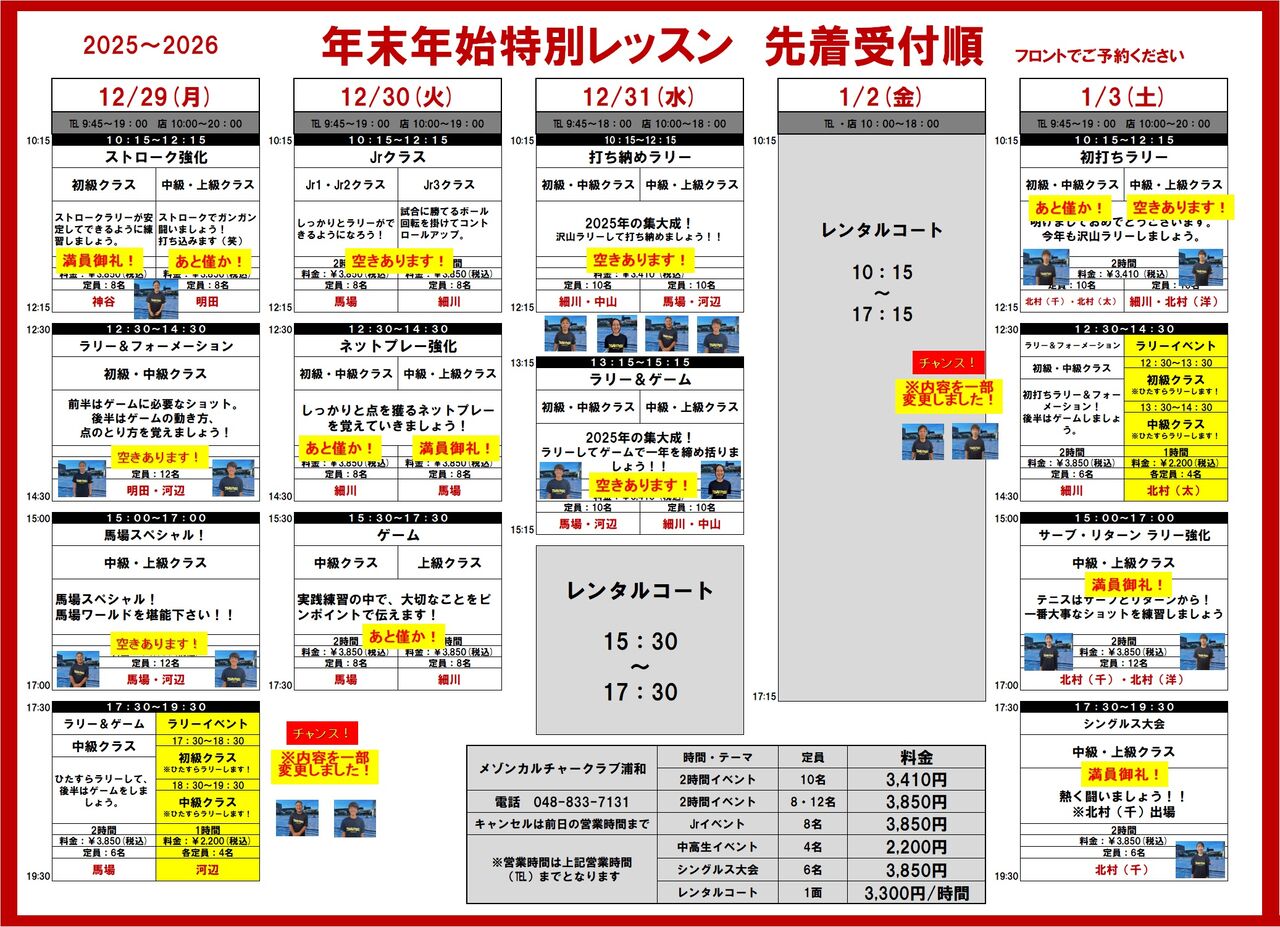 年末年始特別レッスンのお申込み状況をお知らせいたします。